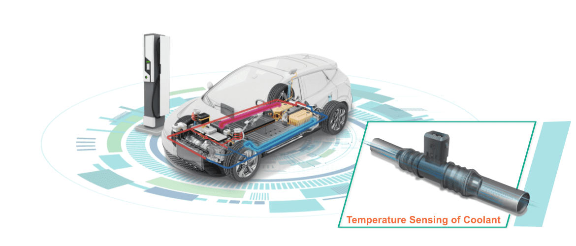 對(duì)電動(dòng)車來說,冷卻系統(tǒng)在優(yōu)化電池和動(dòng)力系統(tǒng)的效能上,扮演重要角色。由于液體冷卻方案具有高熱容量和導(dǎo)熱性,是目前許多電動(dòng)車首選的熱管理解決方案。而準(zhǔn)確量測(cè)冷卻回路中的液體溫度,有助熱管理系統(tǒng)維持電池與其他部件的最佳運(yùn)作溫度。為滿足電動(dòng)車對(duì)精準(zhǔn)量測(cè)溫度與節(jié)省整車空間的需求,興勤開發(fā)了一種緊湊設(shè)計(jì)的NTC溫度傳感器,提供調(diào)節(jié)冷卻回路溫度所需的精確數(shù)據(jù)。